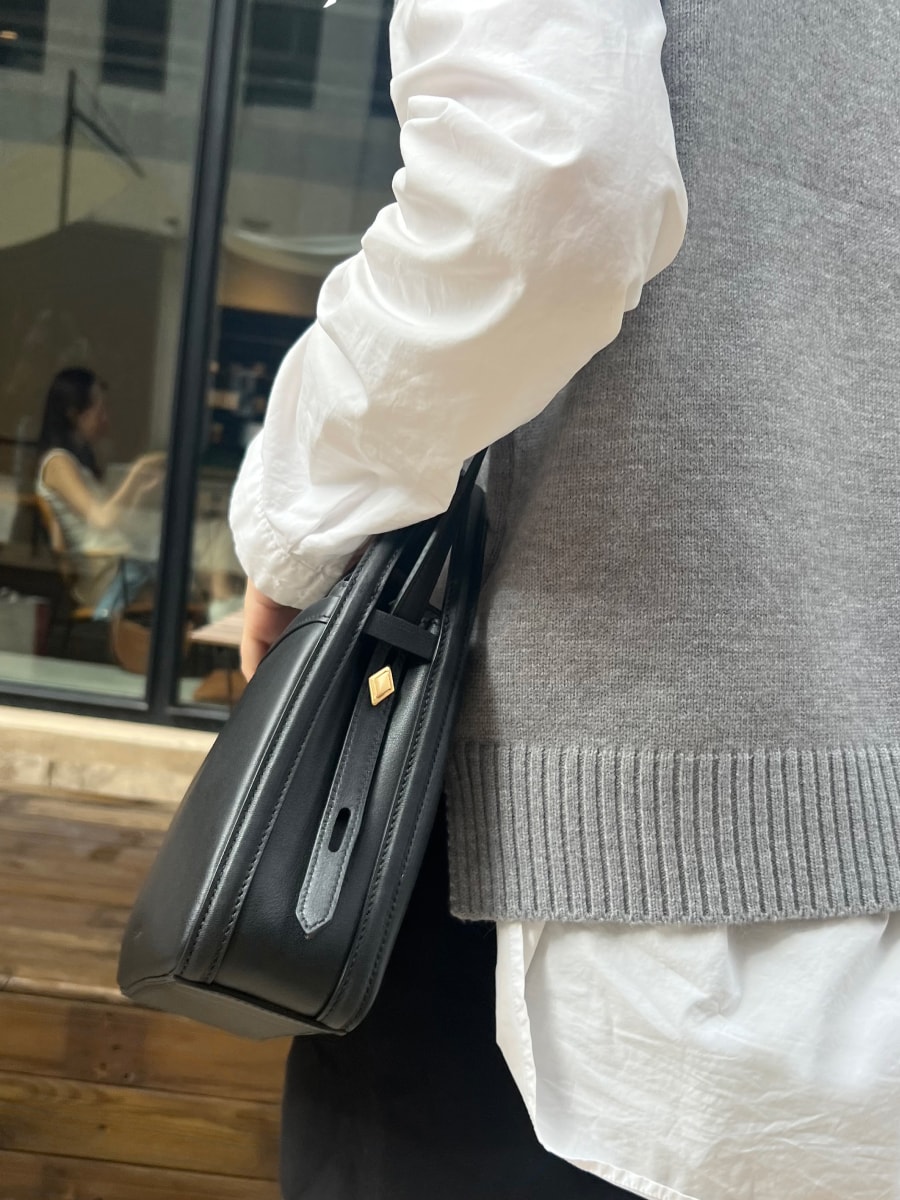 Lipsticks, keys, cellphones, earphones, cigarettes and foundation boxes..... this bagis concepted to carry 10 “Treasures”which accompany us, while transferring in betweenvarious occasions. Shoulder drop height is friendly for shoulder carrying, hiden magnethelps opening easily.