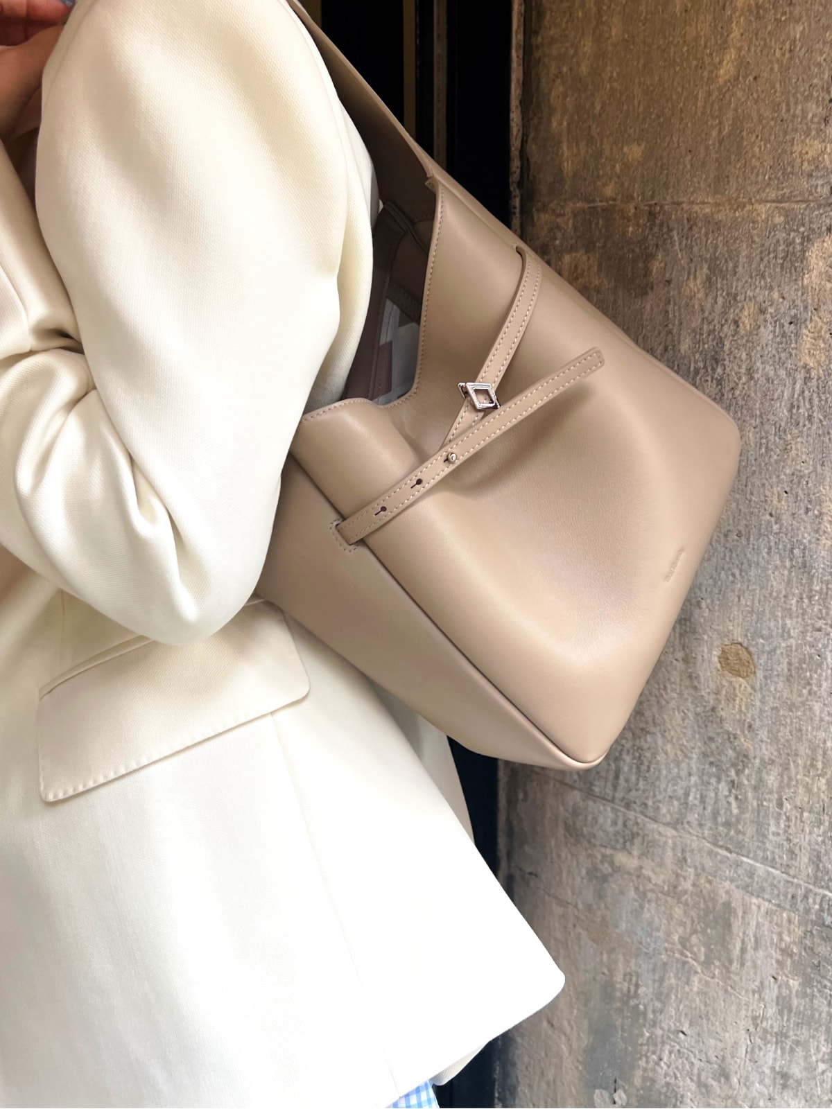 At Large,ultimate blend of style and convenience for your daily adventures. Designed with a relaxed silhouette, this bag is perfect for shoulder wear and commuting, making it an ideal companion for your busy lifestyle. With ample space, the Hobo Bag effortlessly accommodates all your daily essentials, giving you the freedom to grab and go with ease. Its spacious interior allows you to carry everything from your iPad to personal items without compromising on style. Adding a touch of elegance, the front features our brand’s signature diamond-shaped decorative strap, elevating the overall look.